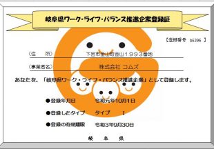 『岐阜県ワーク・ライフ・バランス推進企業』に登録されました
