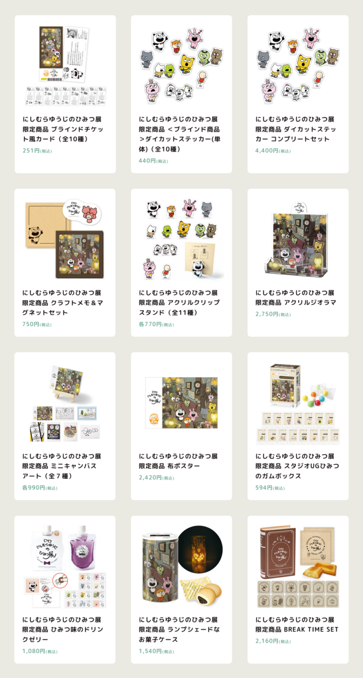 2025 年 3 月より開催の『にしむらゆうじのひみつ展』のグッズを企画・商品化しました。